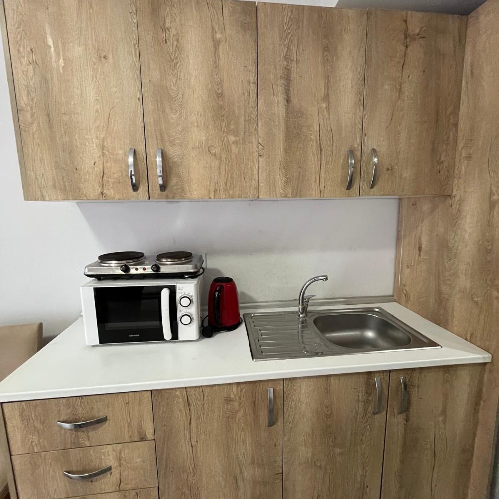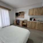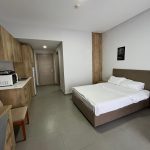 Our double room offers a perfect balance of comfort and functionality, ideal for couples or solo travelers who appreciate extra space and comfort. The room features a spacious double bed with linens. The private en-suite bathroom includes a WC, shower and towels, replenished regularly to maintain hygene standarts. Guests can control the indoor climate with independent air conditioning, tailored to their personal preferences. For added comfort and practicality, the room is equipped with a dedicated work desk, refrigerator, electric kettle, microwave oven, electric cooktop and sink ideal for preparing hot drinks, meals, snacks and enjoying a moment of relaxation at any time of day. A private balcony enhances the guest experience, offering a quiet outdoor space. In addition, all guests have access to a shared kitchen, perfect for preparing meals, snacks or simply enjoying the freedom of self-catering during longer stays. Complimentary high-speed Wi-Fi is available in the room and throughout the property, making it easy to stay connected whether for business or leisure. The double room is the ideal accomodation for those seeking a refined stay with practical amenities.